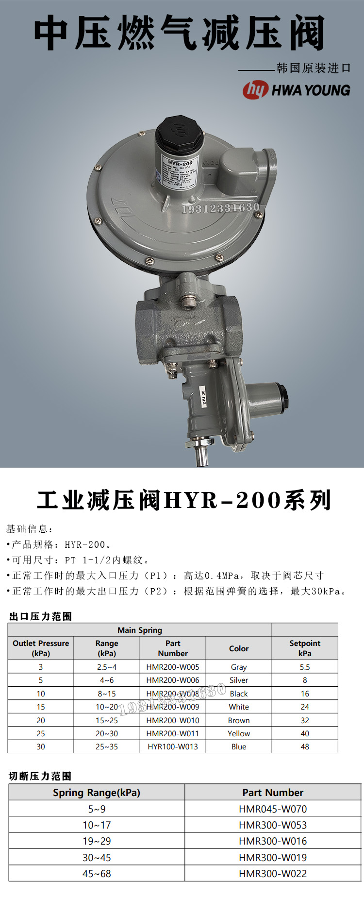 HYR-200系列直接操作弹簧加载调节器设计用于多种减压应用,包括商业和轻工业安装。