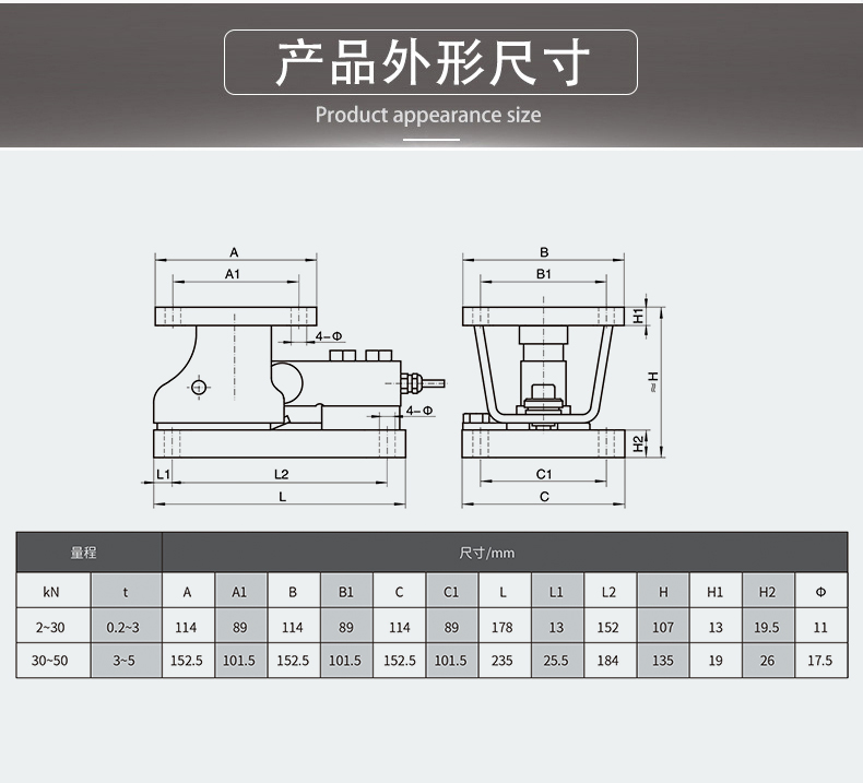 额定载荷: 2,3,5,10,20,30,50,100(kN)