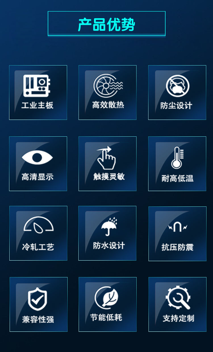 优势:工业级电脑,X86架构 宽温宽压,无风扇无电缆设计,IP65防水等级,防震防尘,完全定制,全面提升电脑性能
