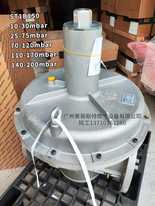 原装进口意大利朱利安妮giuliani anelloST1B125、ST1B150大口径法兰稳压阀,通过弹簧张力调节压力,不需要外力辅助,配有补偿膜、工作膜:无需安装外部通气出口管,原因是组合安全膜片确保在出现裂漏情况下,不会有超过30dm³/H的气体泄漏到外部。
